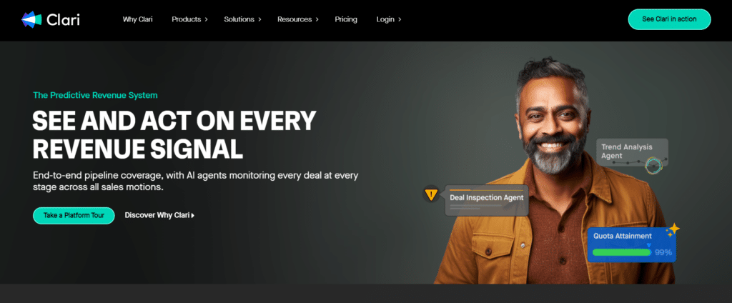 Clari is best suited for teams that want more control over their forecasting process and more transparency in day-to-day deal health. It is not a planning tool and does not touch capacity or headcount, but as a visibility and prediction layer, it is one of the more dependable platforms available.