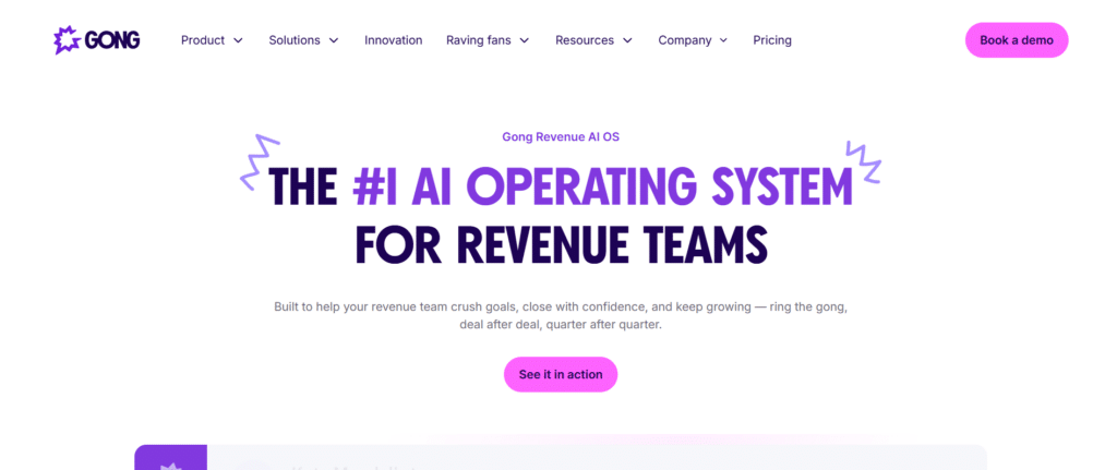 Gong is good at surfacing the “why” behind sales outcomes. Its feature set is built to extract replicable patterns from successful interactions and flag risks in at-risk deals.