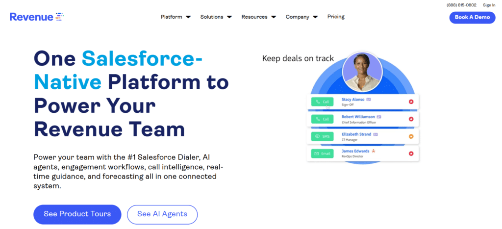 Revenue.io (formerly RingDNA) focuses on the “during” phase of productivity. It offers an AI-powered platform that provides call insights, conversation analytics, and, crucially, real-time guidance to reps while they are on the phone