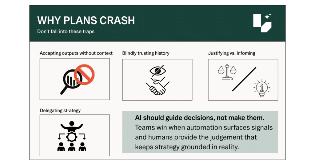 This isn’t a choice between speed and wisdom. It’s a strategic necessity. Each side perfectly compensates for the other’s limitations, creating a planning system that is both scalable and strategically sound. Do you know where AI shines and where human judgment is truly irreplaceable? That is the foundation for high-performance planning.